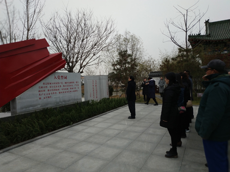 在楊柳雪不忘初心黨性教育基地,在講解員的帶領下,依次參觀了周恩來六個楷模主題展館、懷周祠、周恩來銅像廣場、初心園、村史館、紅色藏品展館等。通過聽講解、看實物、看視頻等方式,深入了解和學習了周恩來總理的崇高精神和高尚品德,重溫了周恩來總理不忘初心、鞠躬盡瘁的光輝一生。在初心園,面對鮮紅的黨旗高舉右手莊嚴宣誓,重溫入黨誓詞。村史館再現了楊柳雪人當年戰天斗地、艱苦奮斗的歷史印跡和棉區紅旗的輝煌歷程。